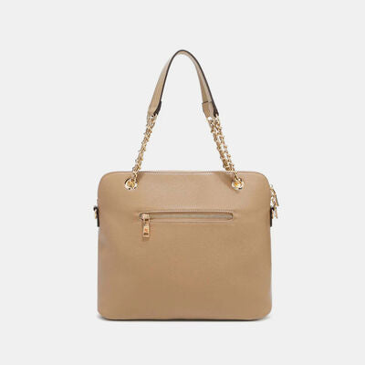 Includes adjustable, detachable strap (41"-48" length, 19"-22.5" strap drop) with swivel snap hooks